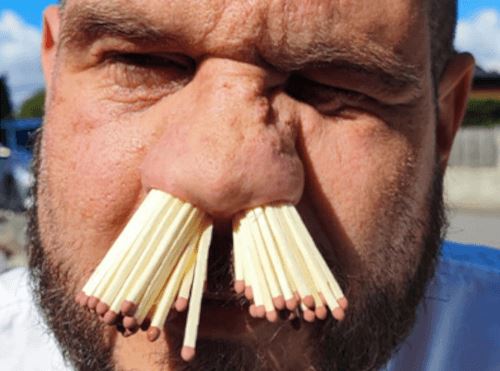 Дети убедили папу засунуть спички в ноздри и стать мировым рекордсменом