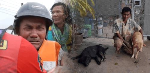 Господин Наронг был вынужден оставить двух своих собак (спасатели не смогли добраться до животных из-за сильного течения). Даже оказавшись в безопасности, хозяин рыдал и обзывал себя эгоистом за то, что бросил лучших друзей. Неудивительно, что как только уровень воды немного спал, Наронг поспешил к своему дому искать собак. И случилось чудо. Обе питомицы хотя и были напуганы и измучены, но оказались живы и здоровы.