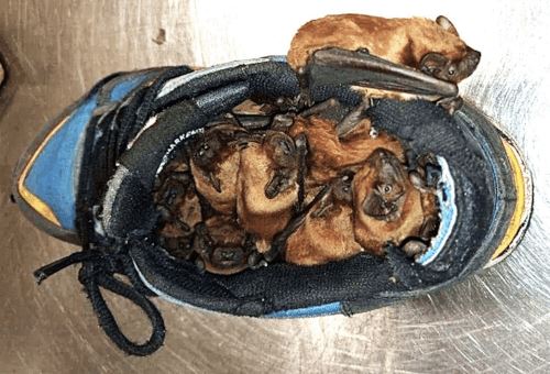Не представляя, что делать с этими жильцами, мужчина обратился в полицию, а те прислали ему на выручку группу экологов. Зимовка в ботинке была не лучшей идеей, так что летучим мышам создадут более благоприятные условия. А герой этой истории согласился пожертвовать своим ботинком — чтобы не беспокоить мышей, их увезли прямо в полюбившейся им обуви.