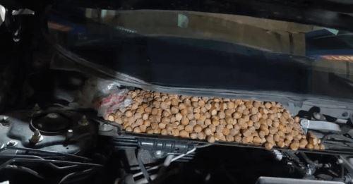 Когда ситуация стала совсем раздражающей, житель Цзиси (провинция Хэйлунцзян, Китай) поехал в автомастерскую к другу, и дальше приятелям оставалось только удивляться. Под капотом автомобиль оказался набит лесными орехами. При этом Ван уверен, что белки (самые естественные подозреваемые) здесь ни при чём — он держит машину в гараже, куда белкам вход заказан.