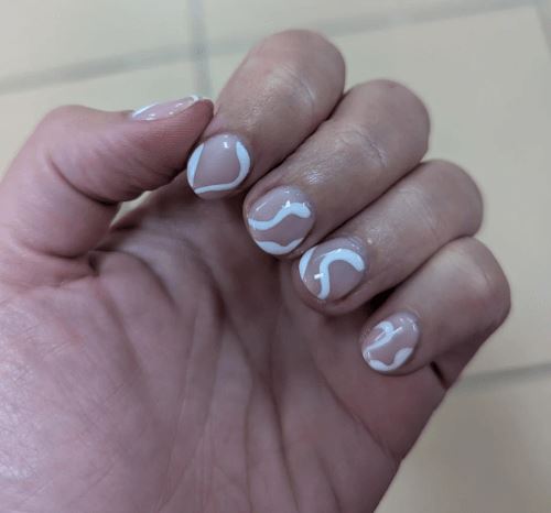 Некая пользовательница социальных сетей показала комментаторам то, что она хотела, и то, что она получила. Главным декором на ноготках должны были стать изящные белые полоски, но конечный результат не радует взгляд ни изяществом, ни мало-мальской эстетикой.