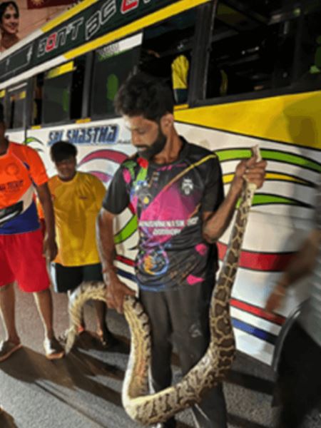Поскольку никто из путешественников понятия не имел, к кому обращаться в такой ситуации, на помощь им пришли местные жители, рассказавшие о живущем в городе змеелове по имени Динеш. Этот мужчина и впрямь оказался специалистом — успешно извлёк питона, после чего свадебный автобус продолжил свой счастливый путь.