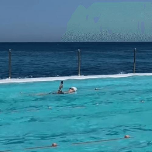 Но некоторые даже плавать готовы только тогда, когда с ними есть их любимый смартфон. Например, некая жительница Сиднея (Австралия), плавала в бассейне на спине, внимательно уставившись на экран своего аппарата. Дама листала странички и, похоже, в какой-то момент сделала селфи.