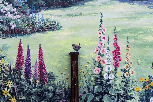 На стене дома старушки он нарисовал фреску, изображающую чудесный сад. Там есть и деревья, и розы, и даже бабочки (по особенной просьбе домовладелицы).