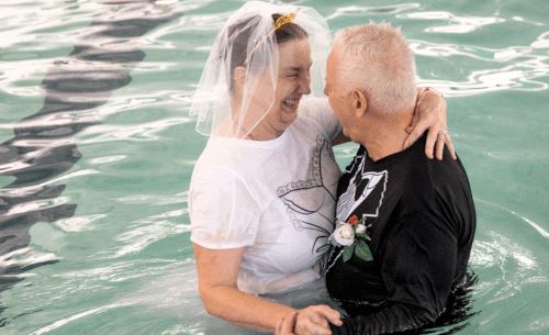 Марлен и Эдвард, вошедшие в воду невестой и женихом, а вышедшие оттуда уже молодожёнами, добавили: они никогда не прочь повеселиться и подурачиться, ведь жизнь слишком коротка.