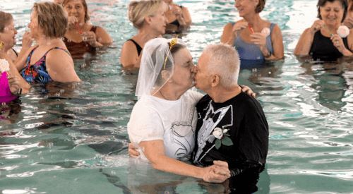Пожилая пара познакомилась в бассейне, а после там же поженилась