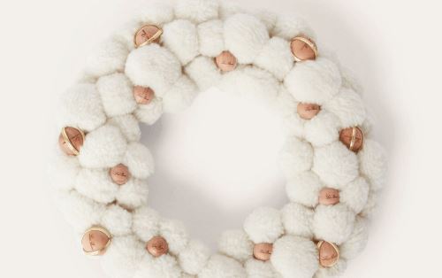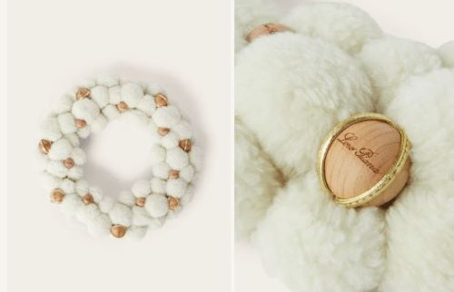 И в том, что касается декора, людям готова помочь итальянская компания «Loro Piana» — производитель одежды из шерсти и кашемира класса люкс. Вот только на сей раз кашемир и шёлк использовался не для одежды, а для создания потрясающего рождественского венка. Белый дизайн дополнен деревянными безделушками и элементами из натуральной овечьей кожи.