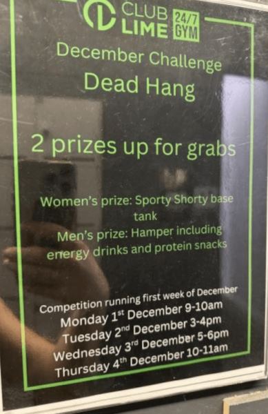 В «Club Lime» объявили о начале декабрьского соревнования, в рамках которого всем участникам предстоит показать себя в таком упражнении, как вис на перекладине. И с призами для самых-самых вышла загвоздка. Женская награда — это спортивная майка от бренда «Sporty Shorty», а мужская — подарочный набор с энергетическими напиткам и протеиновыми закусками.